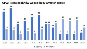 Liczba debiutów na warszawskiej giełdzie w pierwszym półroczu 2021 r. była wyższa od rezultatu osiągniętego w całym 2020 r. Jednocześnie nie ubywa podmiotów opuszczających parkiet.