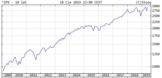 Wzrost kursu indeksu S&P500 na Wall Street w ciągu 10 lat
