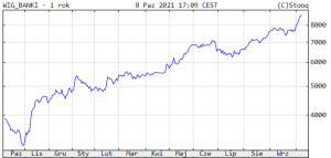 Indeks WIG Banki w ciągu ostatnich 12 miesięcy