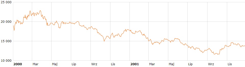 Indeks WIG od początku 2000 r. do końca 2001 r.