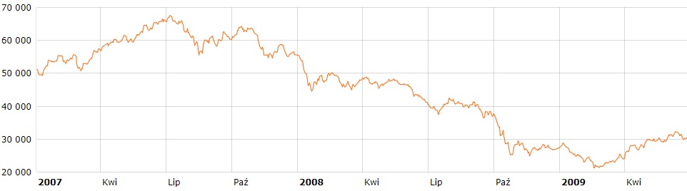 Indeks WIG od początku 2007 r. do połowy 2009 r.