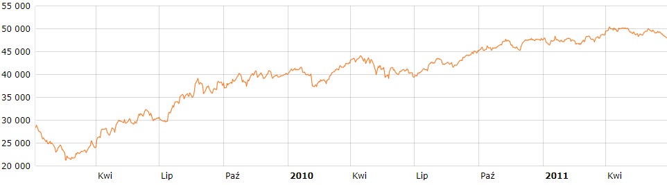 Indeks WIG od początku 2009 r. do połowy 2011 r.