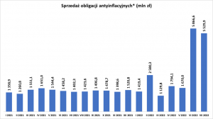 Prawie 42 mld zł ulokowali inwestorzy indywidualni w obligacjach Skarbu Państwa w okresie I-VII 2022 r. To zaledwie o ok. 1 mld zł mniej niż w całym 2021 r. Aż połowę kwoty tegorocznych zakupów stanowiły tzw. obligacje antyinflacyjne.