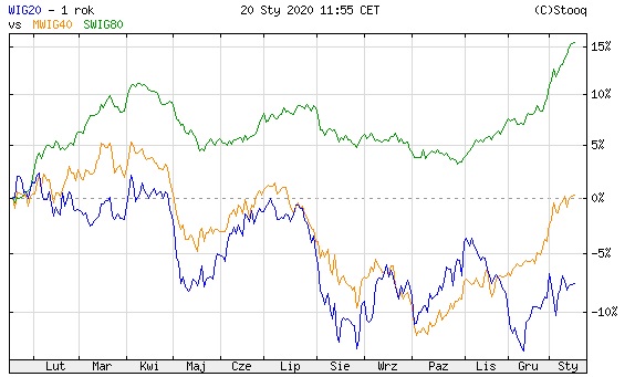 Już ponad 5% zyskały od początku roku indeksy małych i średnich spółek na warszawskiej giełdzie. W tyle pozostaje wskaźnik największych firm WIG20, który utrzymuje się praktycznie na poziomie zamknięcia 2019 r.