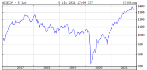 Na dywidendy warto spojrzeć właśnie w kontekście wysokiej inflacji i niskiego oprocentowania lokat. Jeżeli bowiem kwotę dywidendy podzielimy przez kurs akcji, to w ujęciu procentowym otrzymamy tzw. stopę dywidendy. Można traktować ją jako rodzaj „odsetek” od zainwestowanego kapitału.
