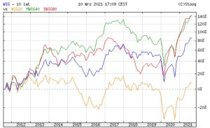 Główne indeksy GPW w ciągu ostatnich 10 lat
