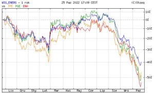 Indeks największych firm (WIG20), w skład którego wchodzi 7 podmiotów z udziałem Skarbu Państwa, stracił od początku roku już prawie 40%. W październiku wskaźnik WIG20 znalazł się nawet na poziomie poniżej „dołka” z okresu panicznej wyprzedaży akcji po wybuchu pandemii w 2020 r.